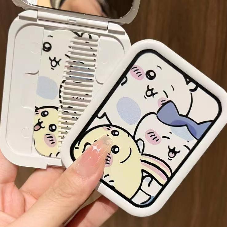 Chiikawa Cute Portable Small Foldable Makeup Mirror with Comb
